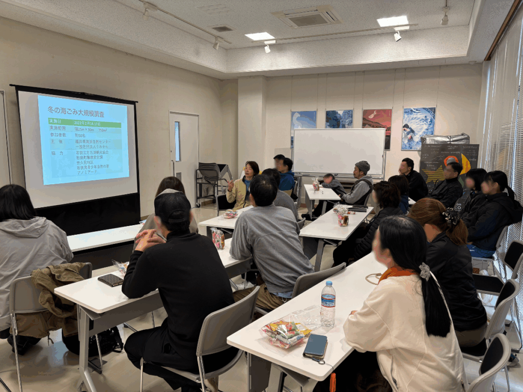 ここでは、世久見海岸での海ごみ調査の結果に基づく傾向などが紹介され、海ごみが“なぜ発生するのか”“どこから来るのか””拾った後どうなるのか”を知る機会となりました。