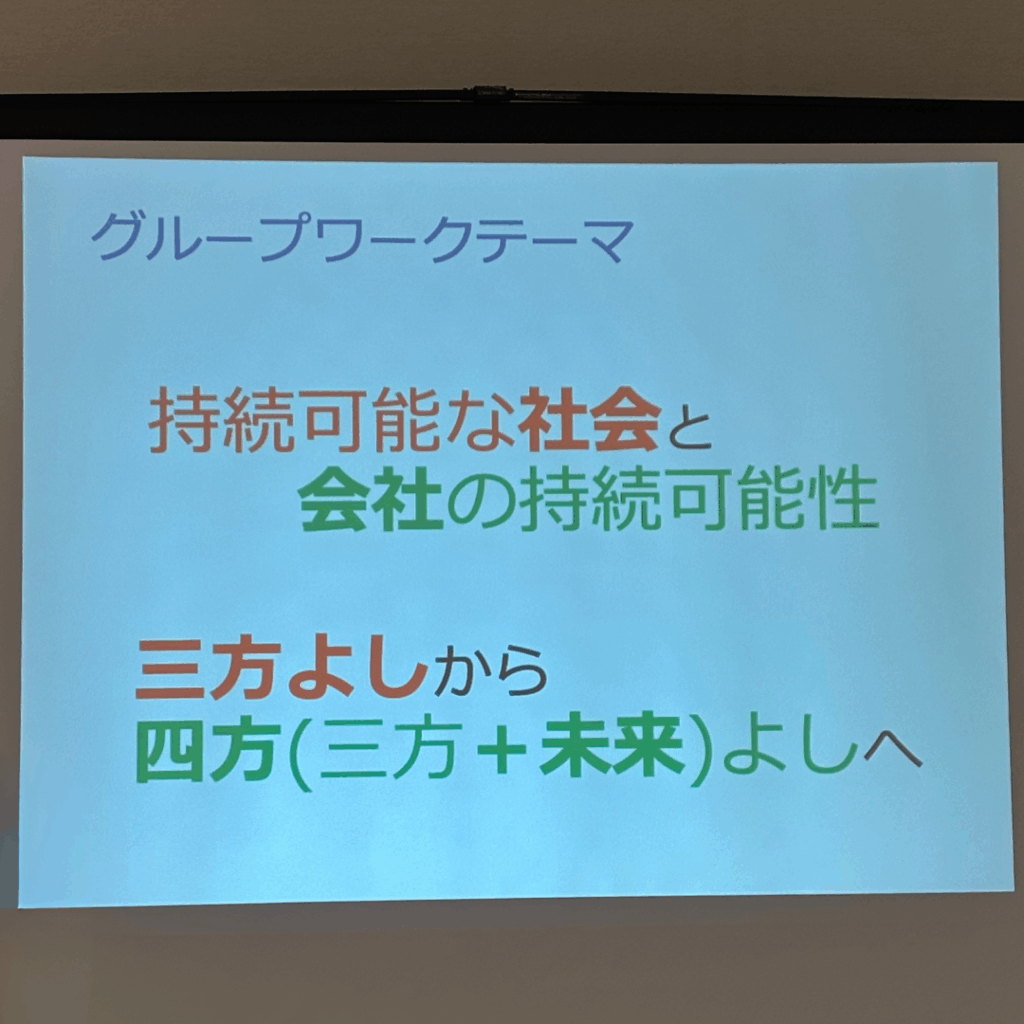 をテーマに、三方よし(売り手よし・買い手よし・世間よし)に“未来よし”を加えた“四方よし”の視点で議論。
